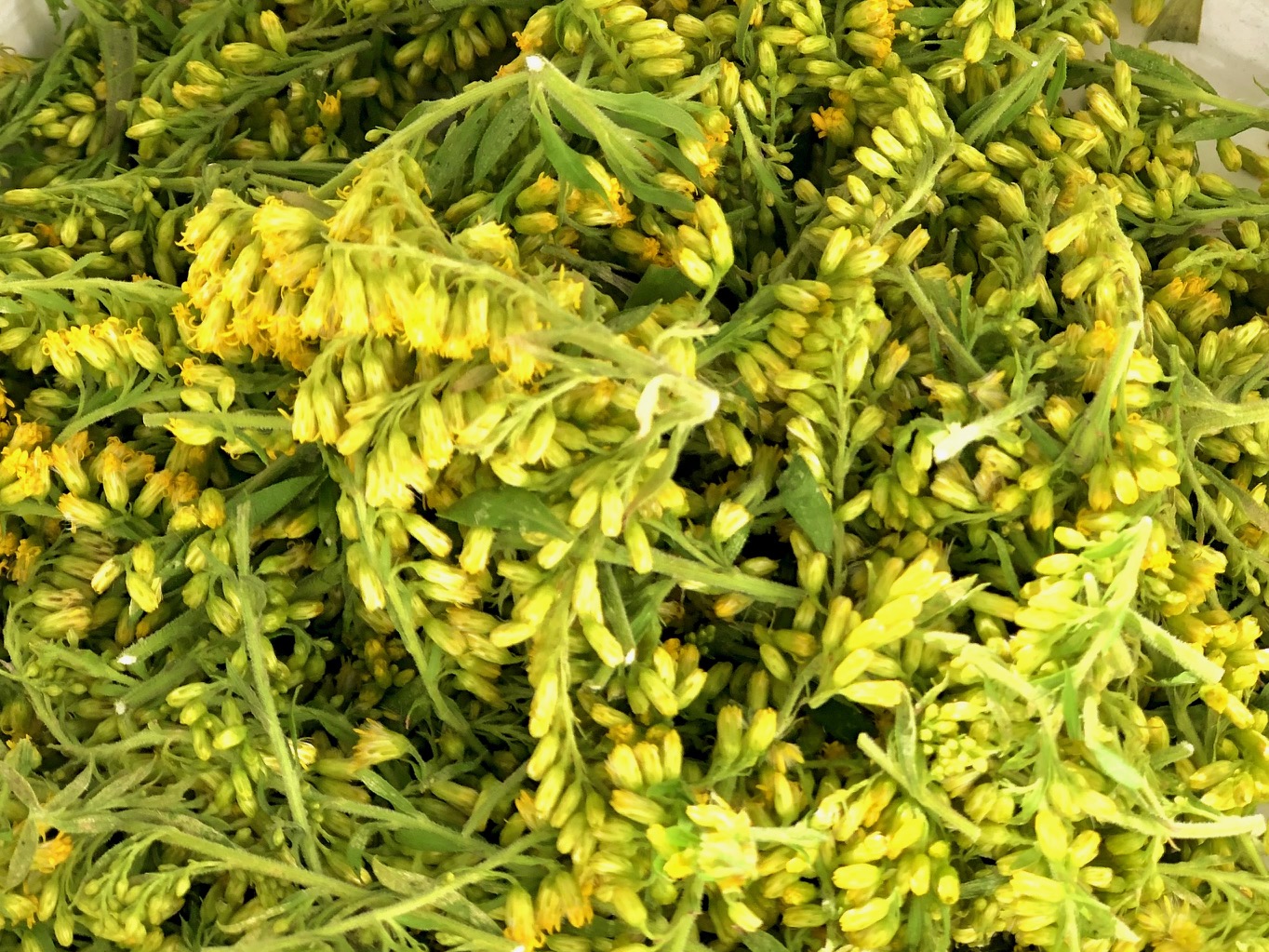 それはセイタカアワダチソウの花が咲く前のつぼみの収穫です! そろそろセイタカアワダチソウの蕾が黄色くなり始めます。 お茶や入浴剤を作るのに、花が咲く前の黄色くなったつぼみが一番効果があるそうです。 収穫したつぼみは、陰干しします。 干したセ...